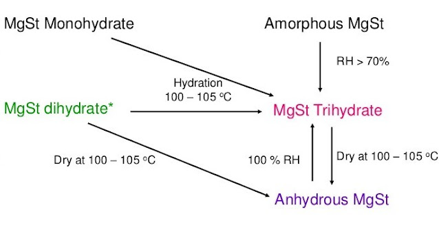 Furthermore, the lubrication efficacy of hydrates of magnesium stearate and their effect on the performance of formulations in pharmaceutical operations were discussed. Overall, it is found that the dihydrate form of magnesium stearate is the best hydration state for lubrication.